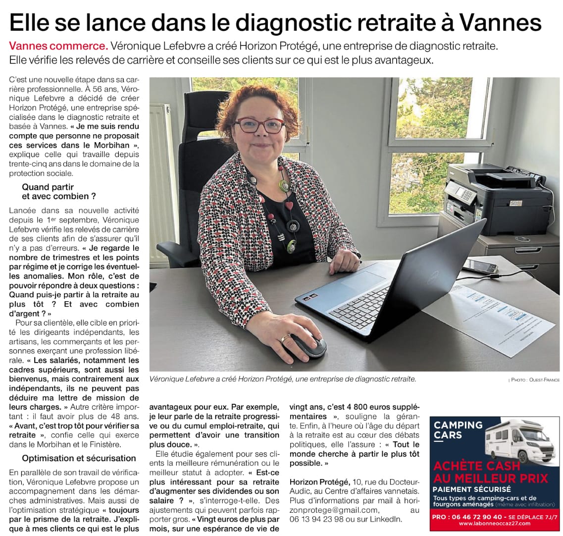 Le lancement d'Horizon Protégé et le service de diagnostic retraite proposé par Véronique ont fait l'objet d'un article dans Ouest-France.